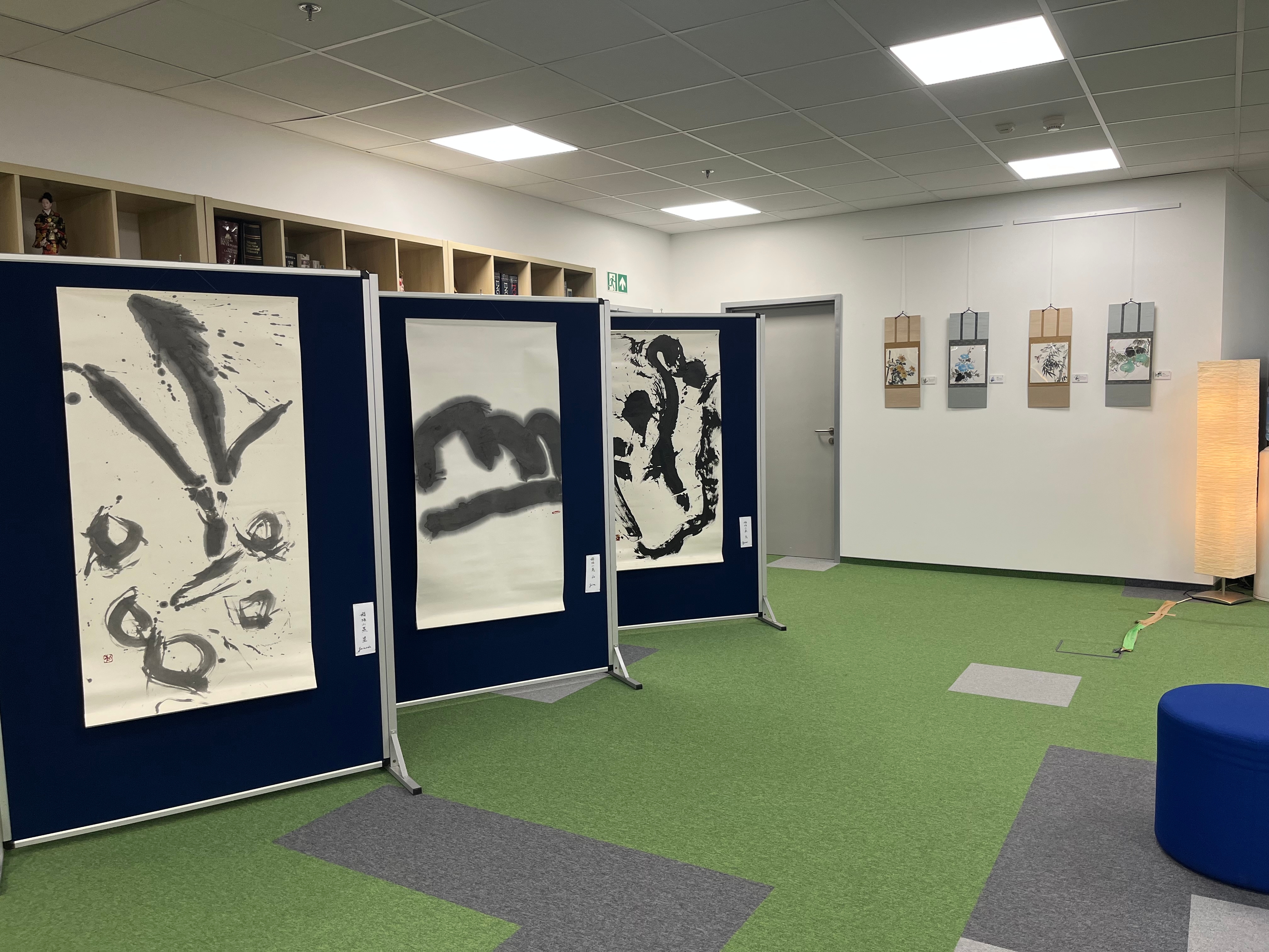 10月8日、当館広報文化センターにて書道・墨絵作品の展示が始まりました。