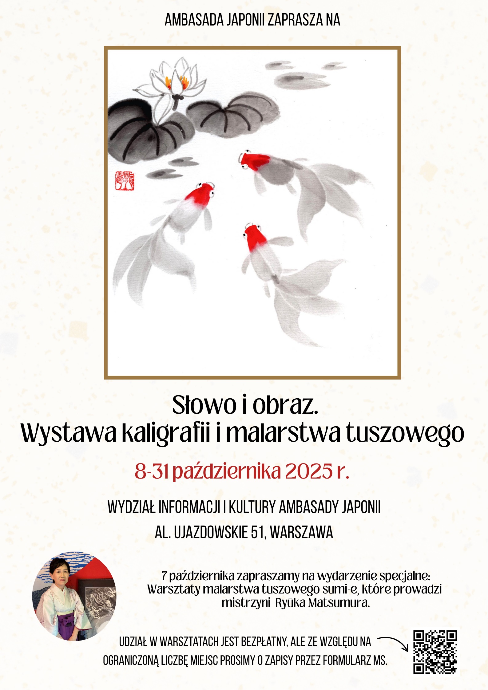 - Wystawa kaligrafii i malarstwa tuszowego sumi-e oraz warsztaty malarstwa tuszem (7.10.2025)